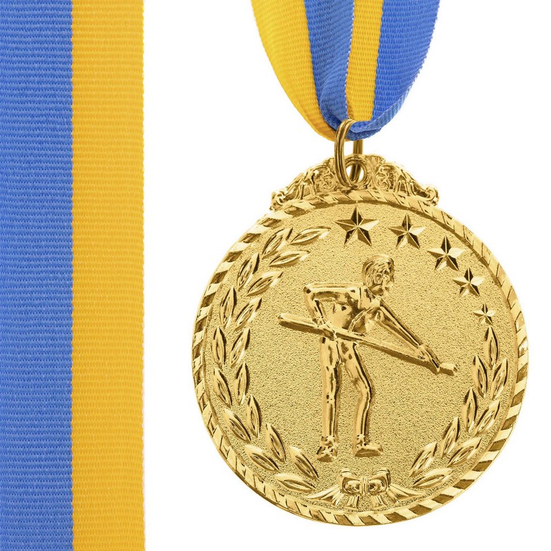 Медаль наградная Чемпион турнира по бильярду 1 место золото d5см
