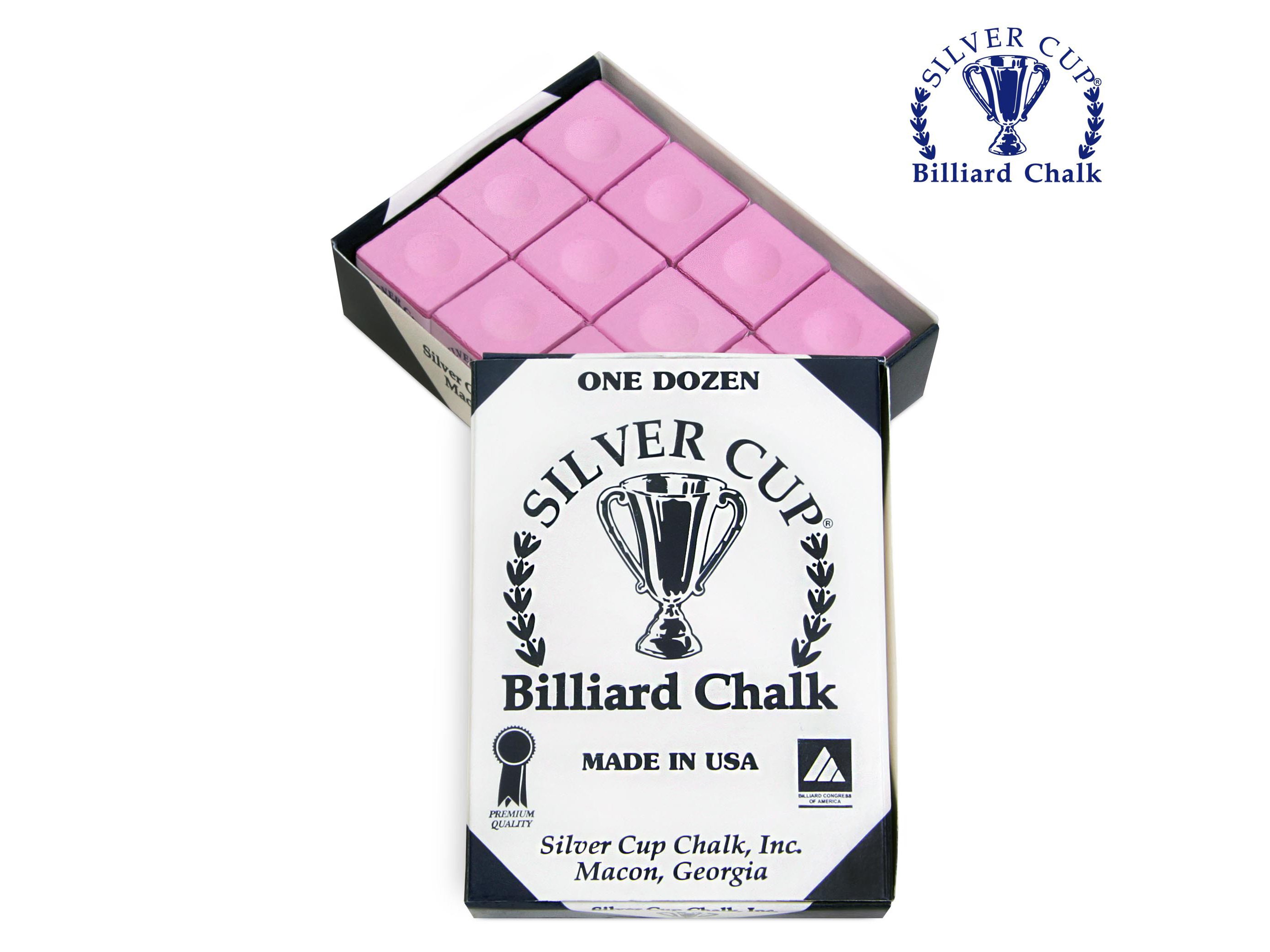 Мел Silver Cup PINK 12 шт — это качественный бильярдный аксессуар, произведённый в США компанией Silver Cup Chalk, Inc., которая работает в этой сфере с 1990 года.