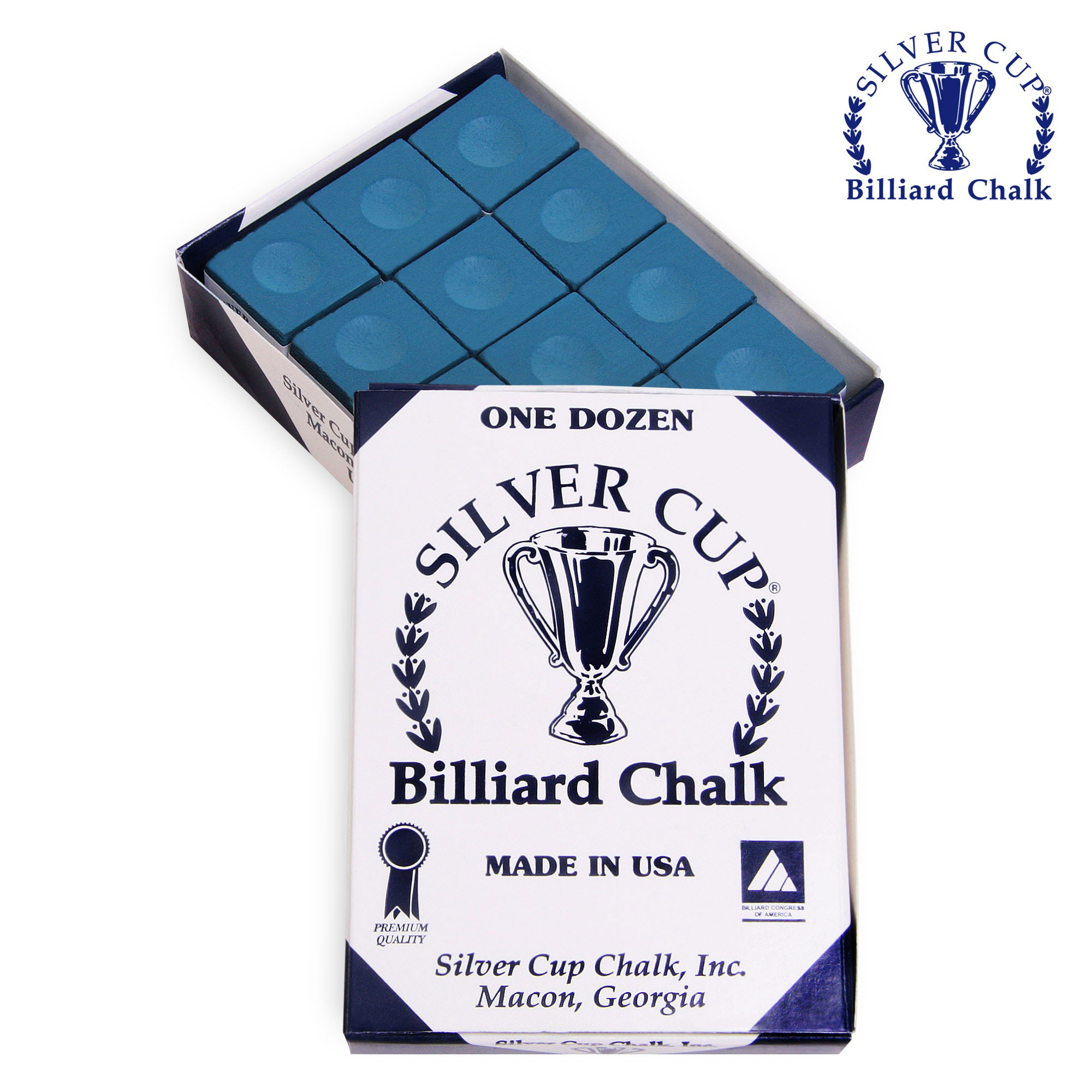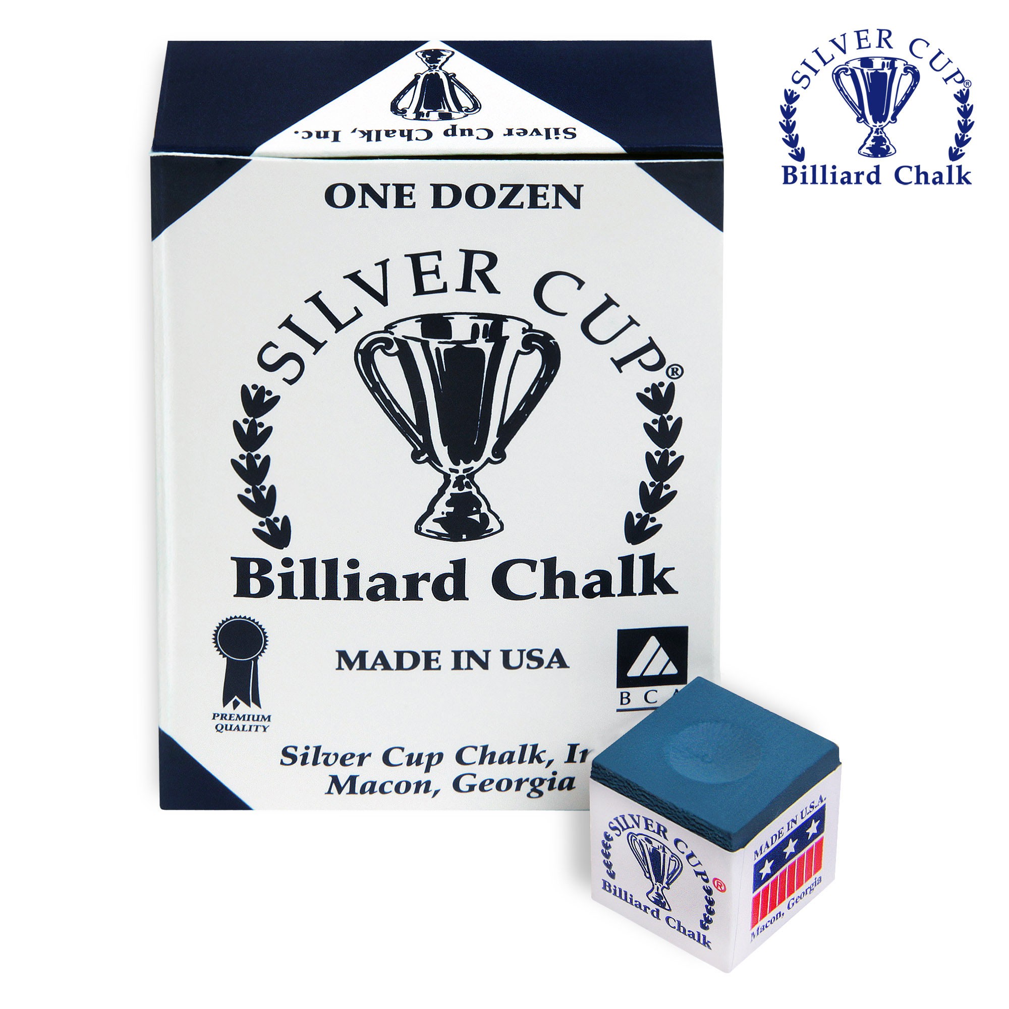 Мел Silver Cup синий (12 шт) — это качественный бильярдный аксессуар, произведённый в США компанией Silver Cup Chalk, Inc., известной с начала 1990-х годов.