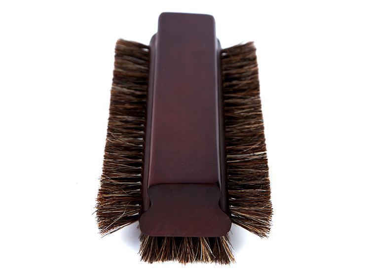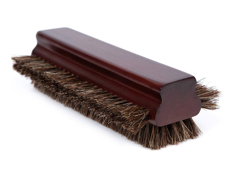 Щетина щётки комбинированная, из конского волоса и нейлона. Корпус изготовлен из древесины, его форма выполнена таким образом, чтобы щётку было комфортно держать в руке.