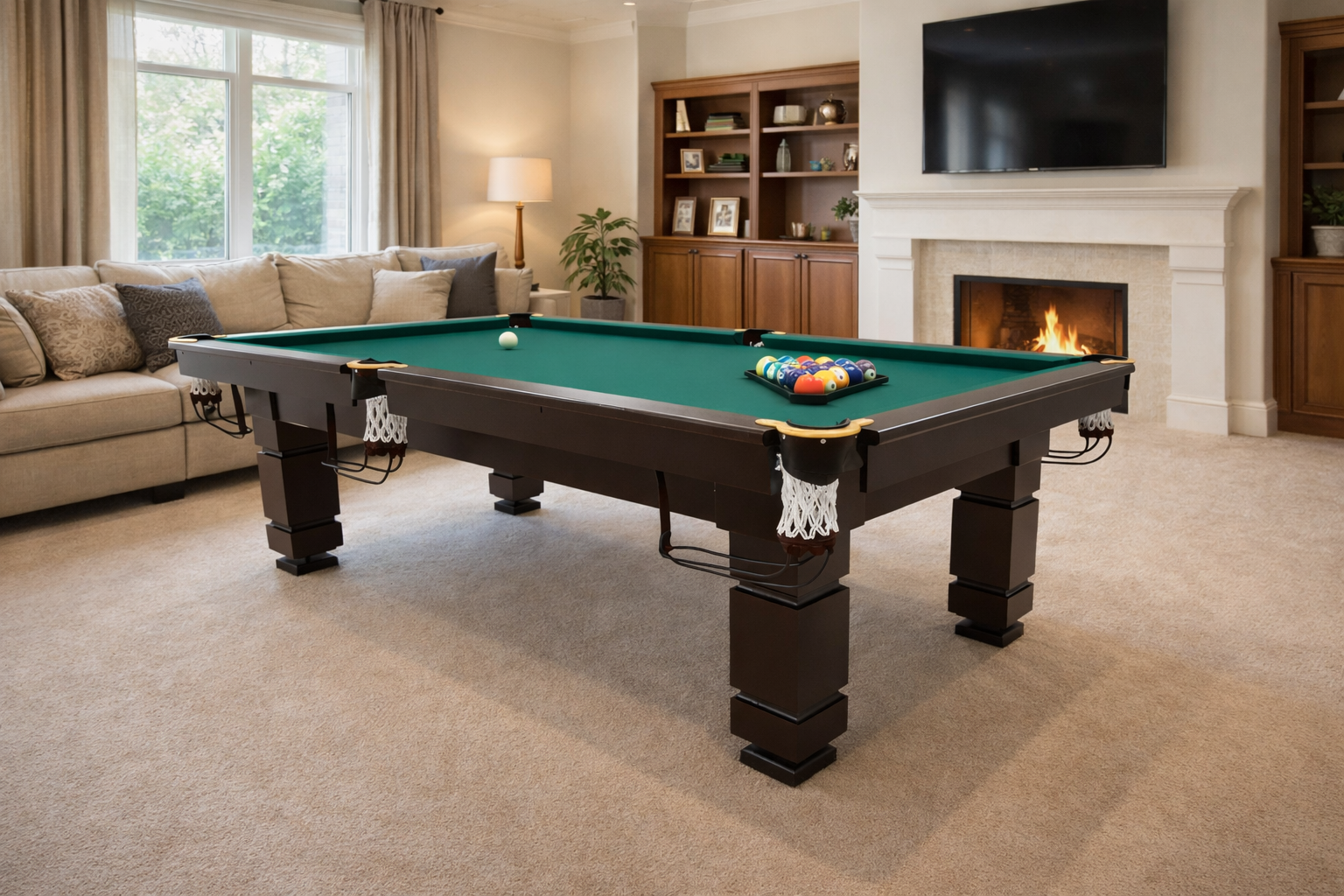 Бильярдный стол для пула Далас — это надёжная и универсальная модель, разработанная для комфортной игры и стабильных игровых характеристик как в домашних условиях, так и в коммерческих помещениях. Стол выполнен из массива ольхи и оснащён игровым полем на натуральной ардезии с профессиональной бортовой резиной, что обеспечивает точную геометрию, плавный раскат шаров и прогнозируемый отскок при любой интенсивности эксплуатации.