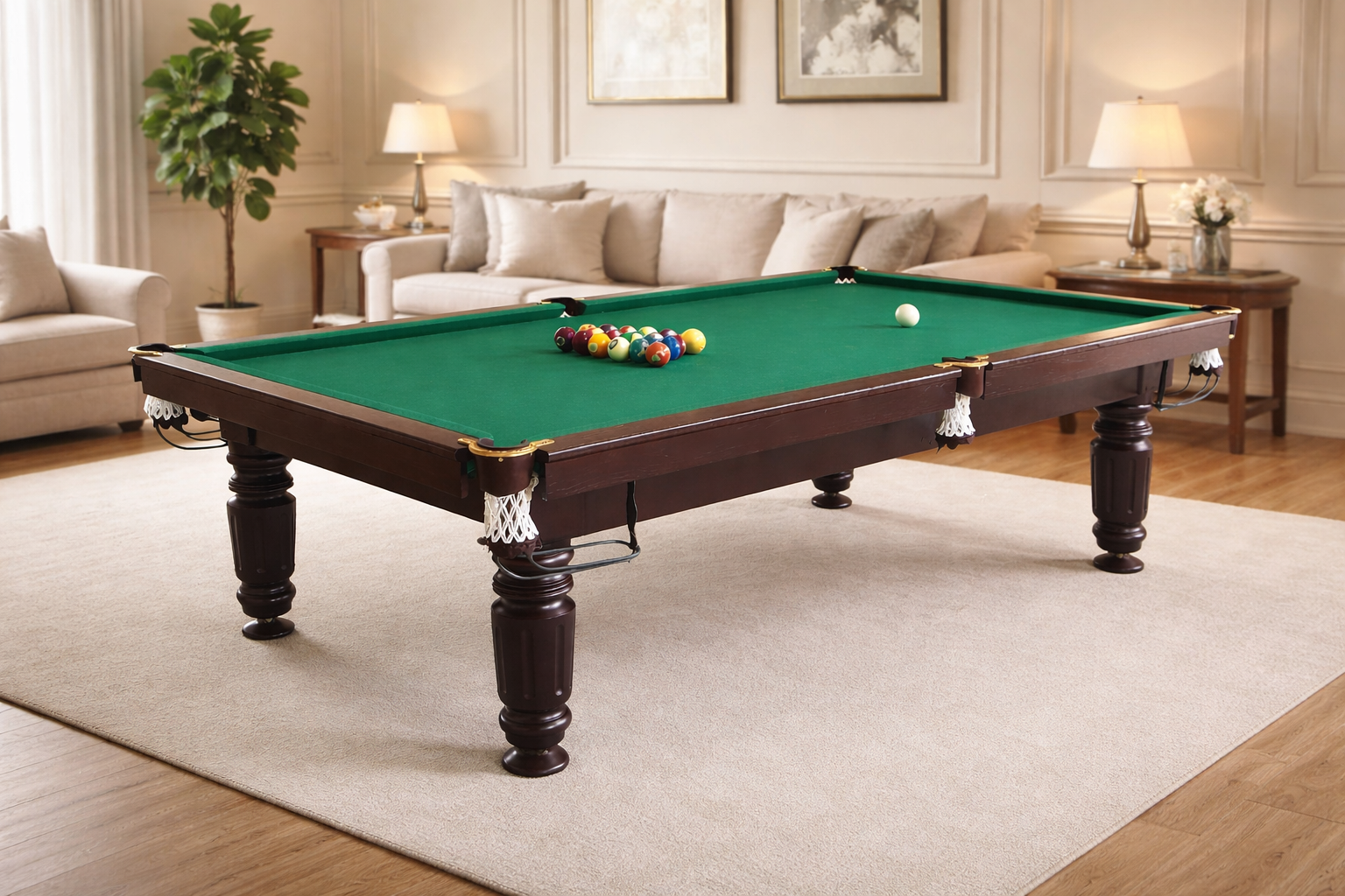 Бильярдный стол для пула Сириус на ардезии с профессиональной резиной и корпусом из натурального дерева — это надежное и точное решение для ценителей классической игры и стабильных игровых характеристик. Модель разработана как для домашнего использования, так и для коммерческой эксплуатации, обеспечивая высокий уровень комфорта, прочности и долговечности.