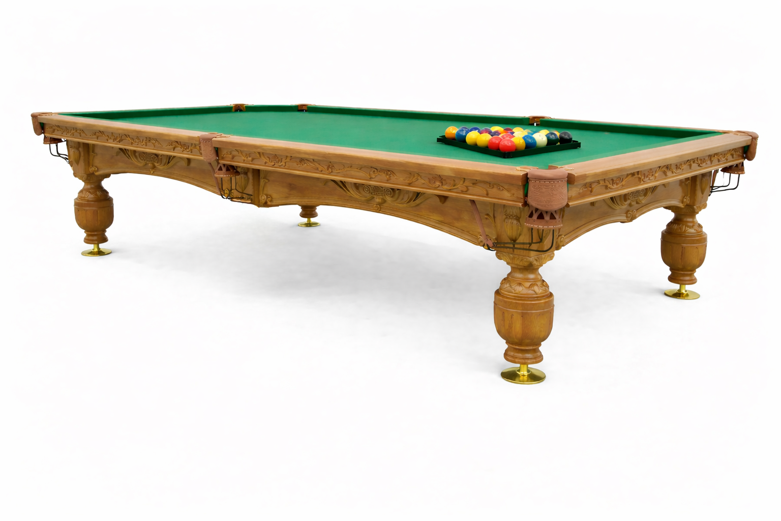 Бильярдный стол Монарх — это премиальная модель для игры в пул, созданная для ценителей точной геометрии, безупречной устойчивости и классического благородного дизайна. Стол сочетает в себе массив натурального дерева, ардезию и профессиональную бильярдную резину, обеспечивая эталонные игровые характеристики как для дома, так и для коммерческого использования.