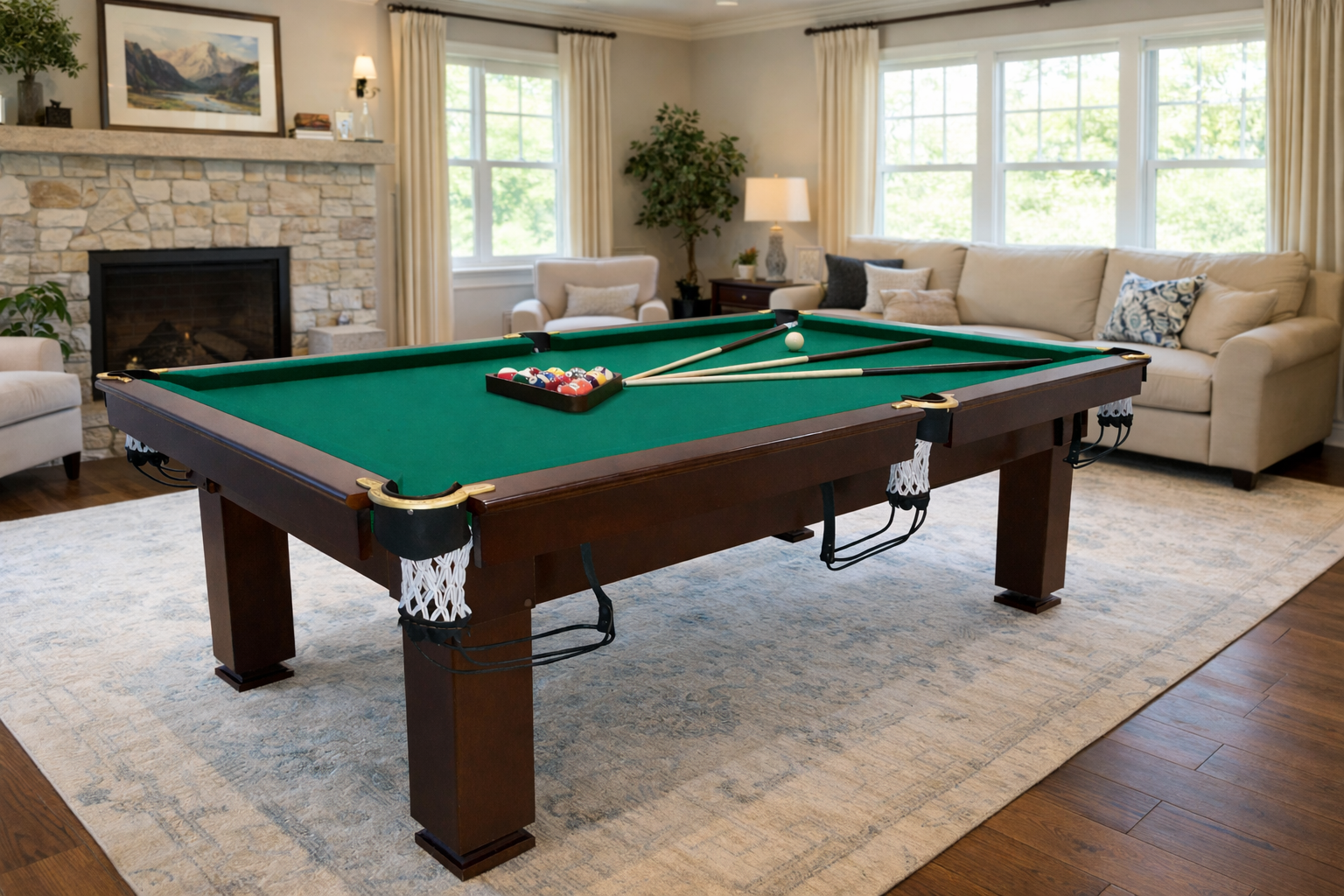 Бильярдный стол Олимп — это качественная любительская модель для игры в пул, разработанная для комфортной и стабильной игры в домашних условиях и коммерческих помещениях с умеренной нагрузкой. Стол сочетает прочную конструкцию, классический дизайн и оптимальное соотношение цены и качества, что делает его отличным выбором для дома, дачи, квартиры, а также для баров, лаунж-зон и игровых комнат.