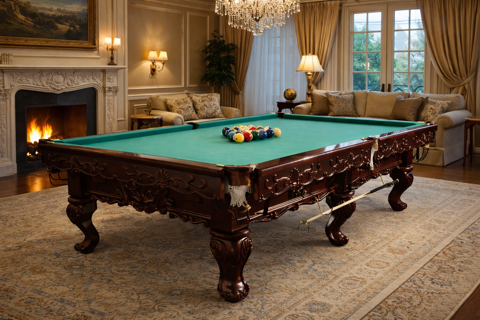 Игровое поле выполнено на натуральной ардезии, которая гарантирует идеально ровную поверхность и сохранение геометрии на протяжении всего срока эксплуатации. Ардезия устойчива к деформациям, перепадам температуры и влажности, что особенно важно для стабильной и точной игры в пул.