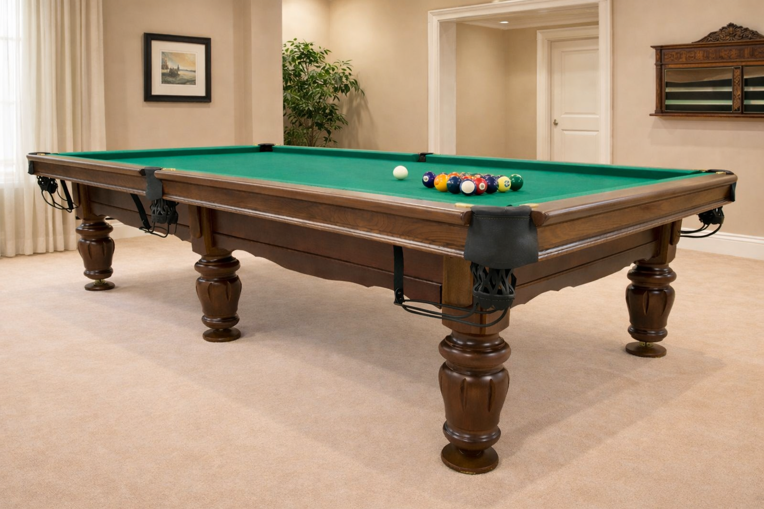 Бильярдный стол Виват — это надежная и эстетичная модель профессионального класса для игры в пул, выполненная из массива натурального дерева и оснащённая игровым полем на ардезии с профессиональной бильярдной резиной. Стол сочетает классический дизайн, прочную конструкцию и отличные игровые характеристики, благодаря чему одинаково хорошо подходит как для домашнего использования (квартира, дом, дача), так и для коммерческих помещений (бильярдные клубы, бары, лаунж-зоны, отели, игровые комнаты и зоны отдыха).