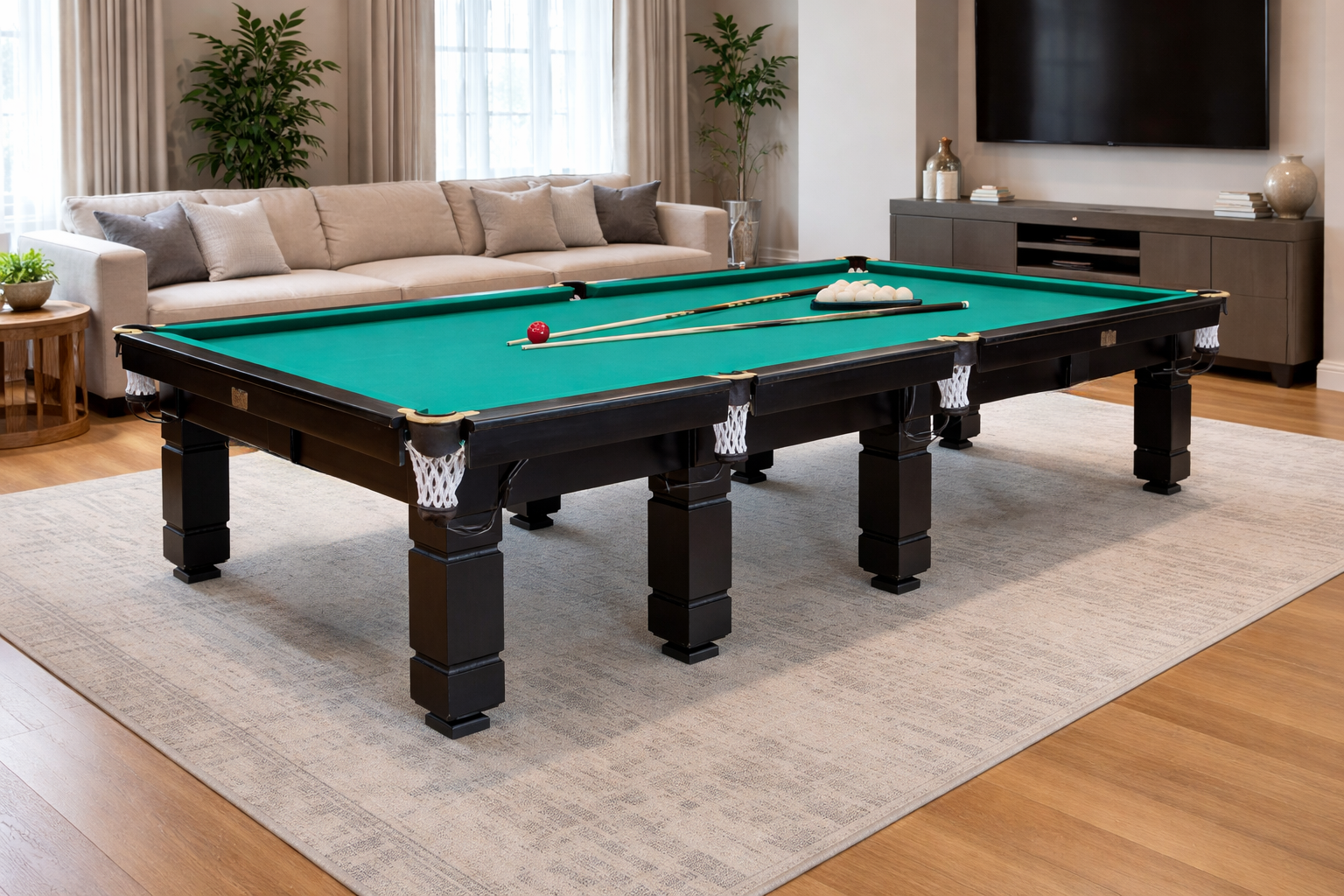 Бильярдный стол для пирамиды Далас — это надёжная и сбалансированная модель, созданная для комфортной игры и стабильных игровых характеристик как в домашних условиях, так и в коммерческих помещениях. Стол выполнен из массива ольхи и оснащён игровым полем на натуральной ардезии с профессиональной бортовой резиной, что обеспечивает точный раскат шаров, уверенный отскок и высокую устойчивость конструкции при интенсивной эксплуатации.