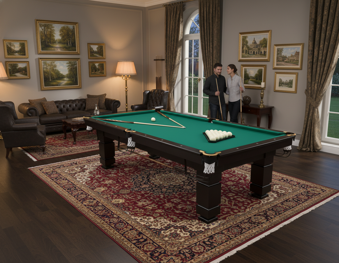 Бильярдный стол для пирамиды Далас — это надёжная и сбалансированная модель, созданная для комфортной игры и стабильных игровых характеристик как в домашних условиях, так и в коммерческих помещениях. Стол выполнен из массива ольхи и оснащён игровым полем на натуральной ардезии с профессиональной бортовой резиной, что обеспечивает точный раскат шаров, уверенный отскок и высокую устойчивость конструкции при интенсивной эксплуатации.