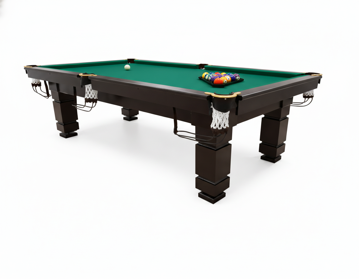 Бильярдный стол для пирамиды Далас — это надёжная и сбалансированная модель, созданная для комфортной игры и стабильных игровых характеристик как в домашних условиях, так и в коммерческих помещениях. Стол выполнен из массива ольхи и оснащён игровым полем на натуральной ардезии с профессиональной бортовой резиной, что обеспечивает точный раскат шаров, уверенный отскок и высокую устойчивость конструкции при интенсивной эксплуатации.