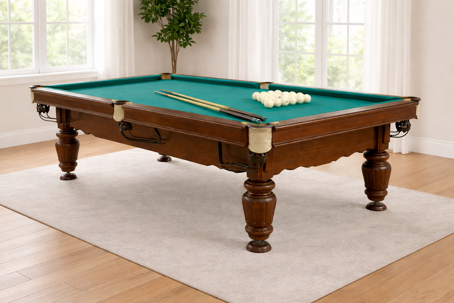 Бильярдный стол Виват — это надежная и эстетичная модель любительского класса для игры в русскую пирамиду, выполненная из массива натурального дерева и оснащённая игровым полем на ардезии с профессиональной бильярдной резиной. Стол сочетает классический дизайн, прочную конструкцию и отличные игровые характеристики, благодаря чему одинаково хорошо подходит как для домашнего использования (квартира, дом, дача), так и для коммерческих помещений (бильярдные клубы, бары, лаунж-зоны, отели, игровые комнаты и зоны отдыха).