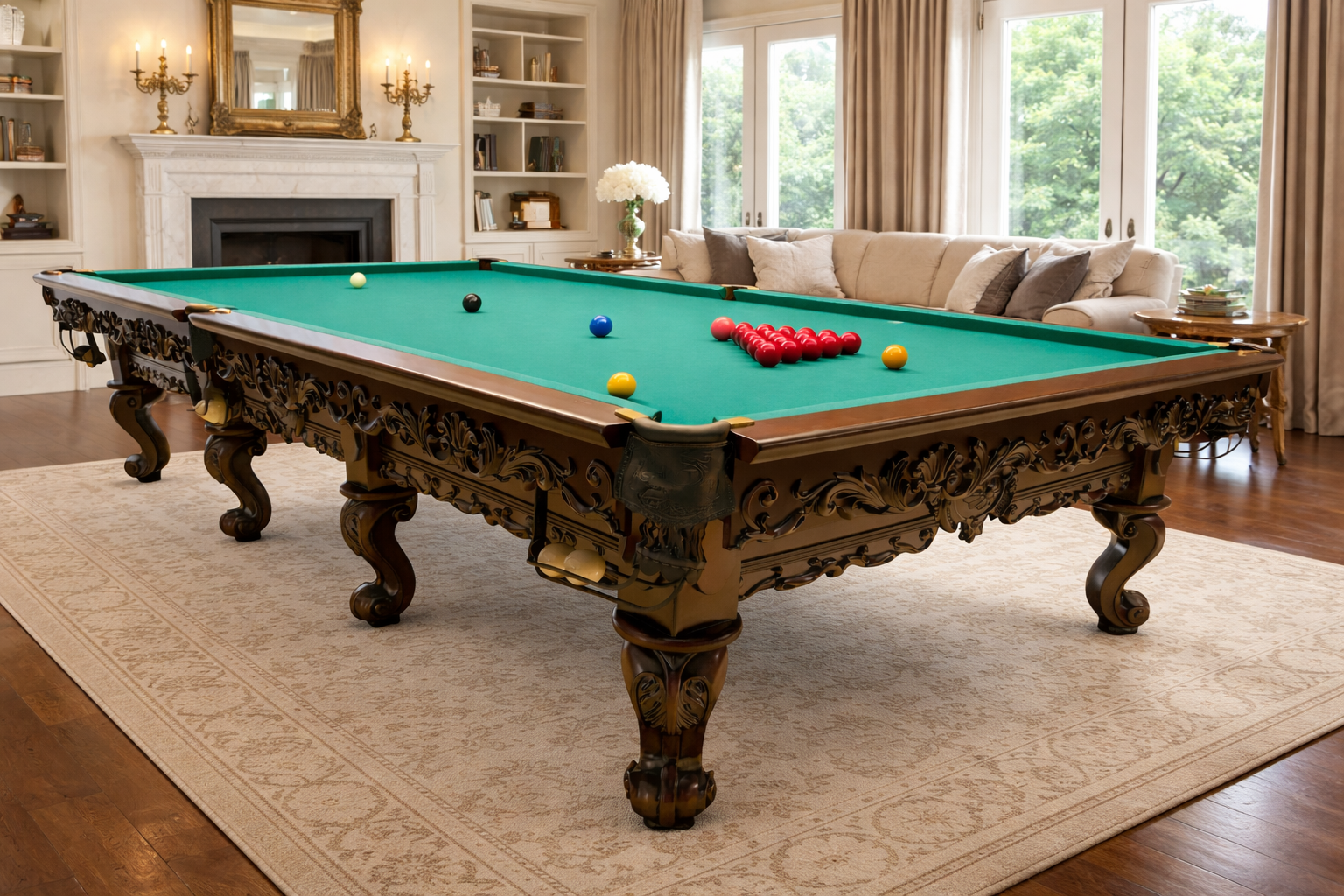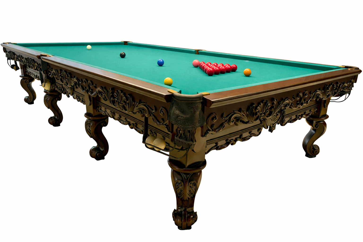 Игровое поле выполнено из натуральной ардезии, которая гарантирует абсолютно ровную поверхность и стабильность геометрии на протяжении всего срока эксплуатации. Ардезия устойчива к деформациям, перепадам температуры и влажности, что критически важно для точной и медленной игры в снукер.