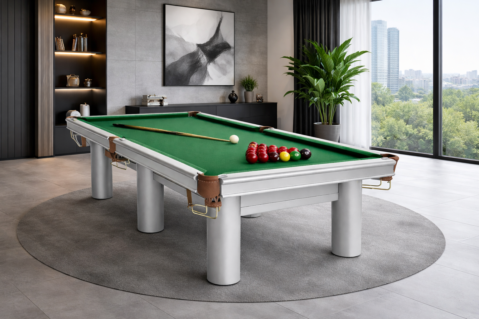 Бильярдный стол для снукера Хайтек — это современная модель профессионального класса, изготовленная из массива натурального ясеня. Стол сочетает актуальный дизайн, надежную конструкцию и высокие игровые характеристики, а также широкие возможности индивидуальной комплектации, благодаря чему одинаково хорошо подходит для домашнего использования (дома, дачи и квартиры) и коммерческих помещений (бильярдных клубов, баров, лаунж-зон, отелей, игровых комнат и зон отдыха).