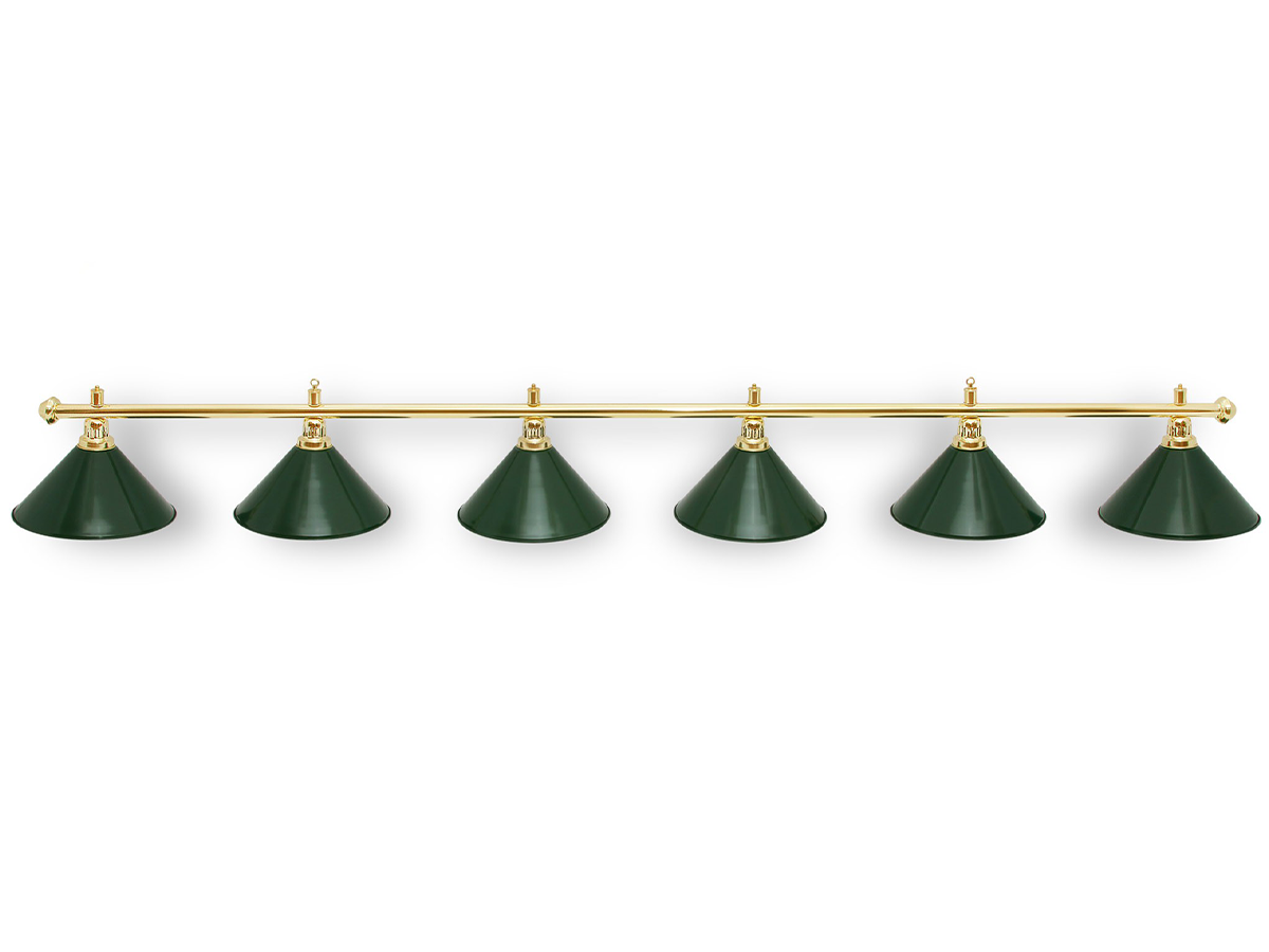 Светильник бильярдный Classic Gold (6 плафонов) — стильная бильярдная лампа с металлическими плафона..