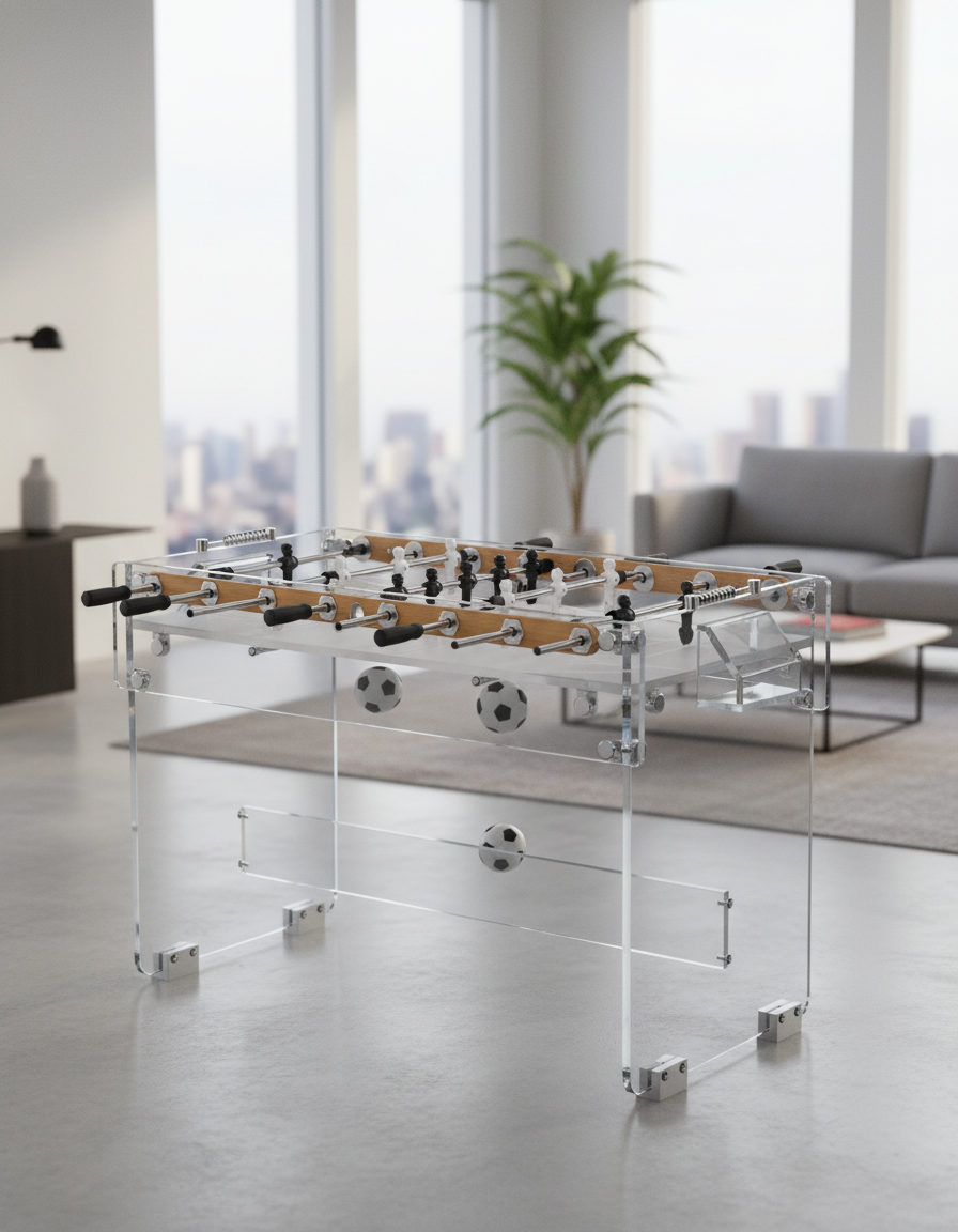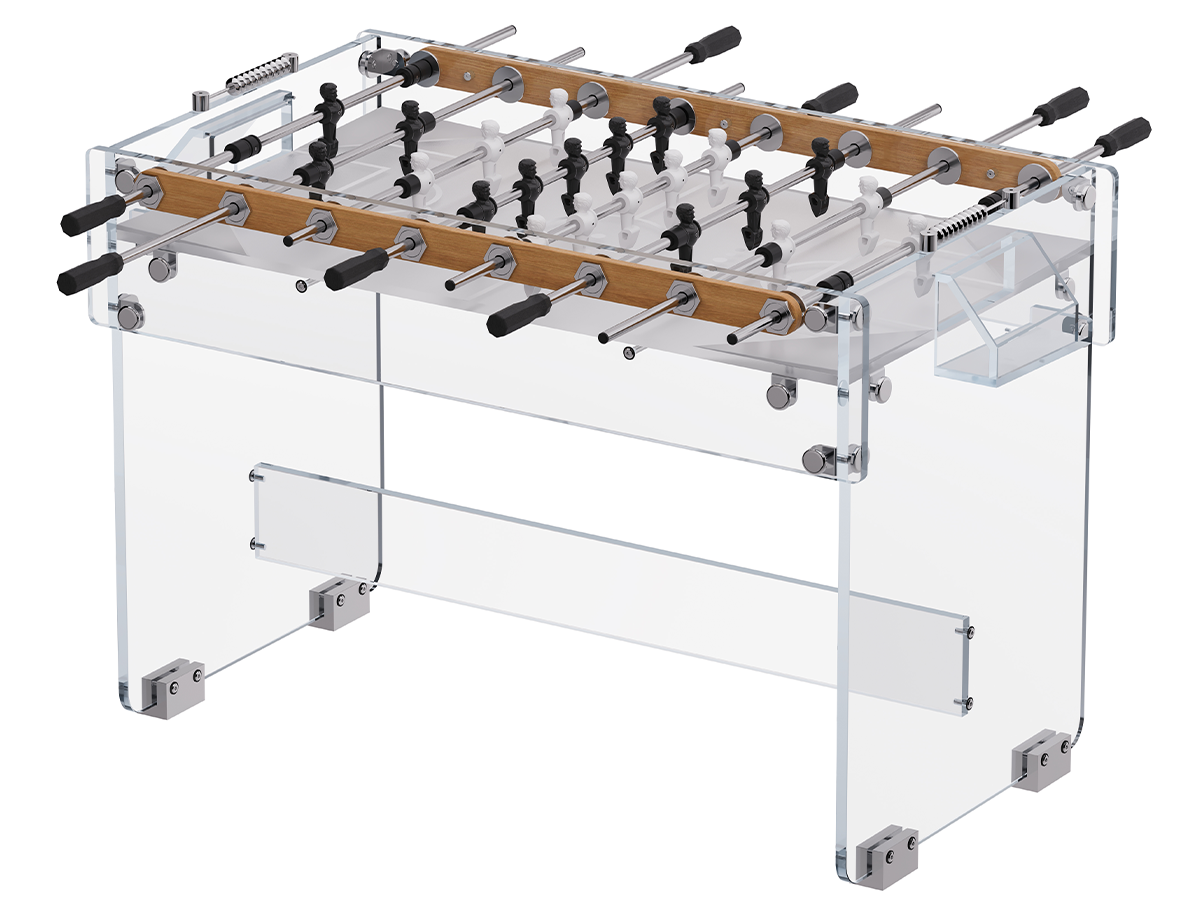 Настільний футбол Venecia - це ексклюзивний ігровий стіл, виконаний з високоякісного акрилу, який стане справжньою окрасою вашого дому або офісу. Ідеальний вибір для любителів настільного футболу, які цінують стиль і якість. Прозора акрилова конструкція надає грі особливу легкість і витонченість, а також забезпечує довговічність і стійкість до пошкоджень. Настільний футбол Venecia не тільки забезпечує захоплюючі матчі, але й служить стильним елементом інтер'єру. Підходить як для професійних гравців, так і для початківців. Насолоджуйтесь динамічними іграми з друзями та родиною з настільним футболом Venecia!