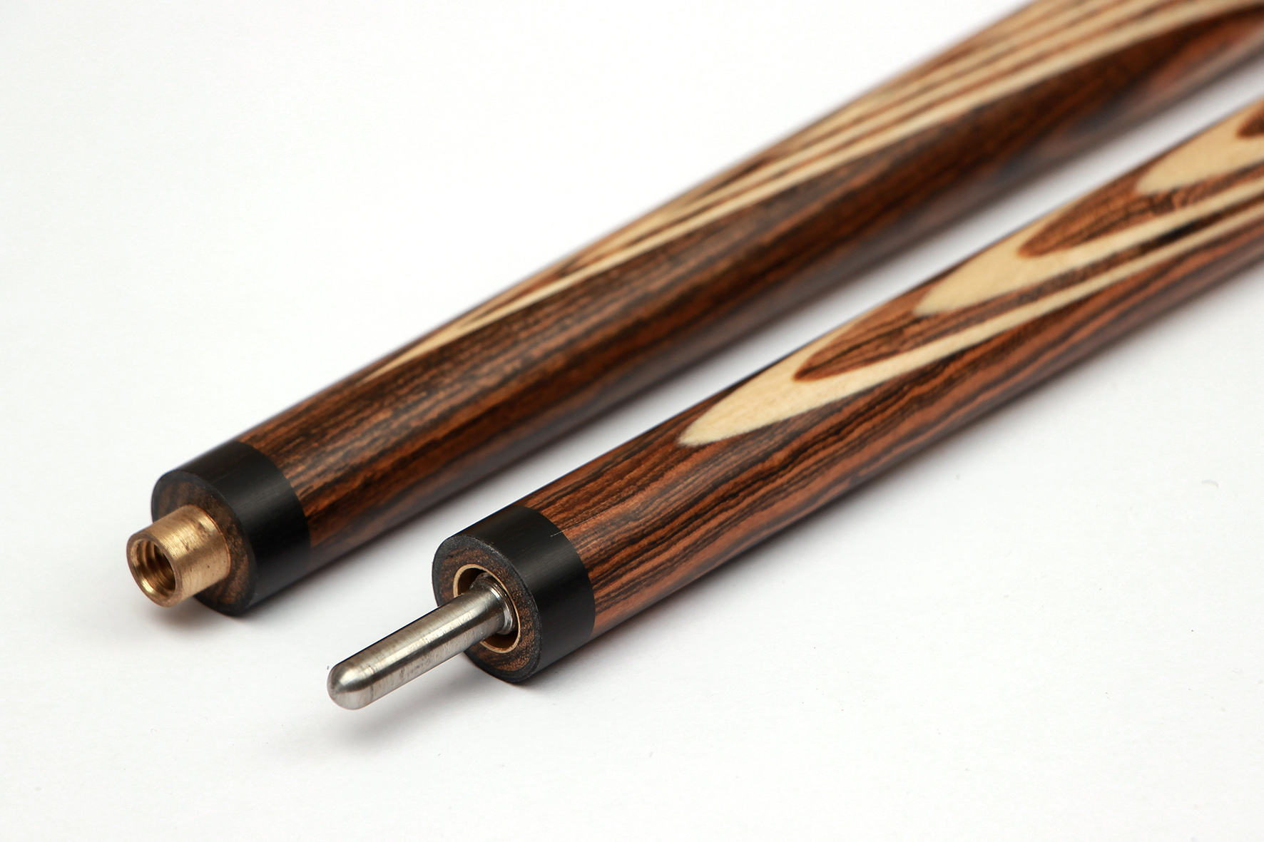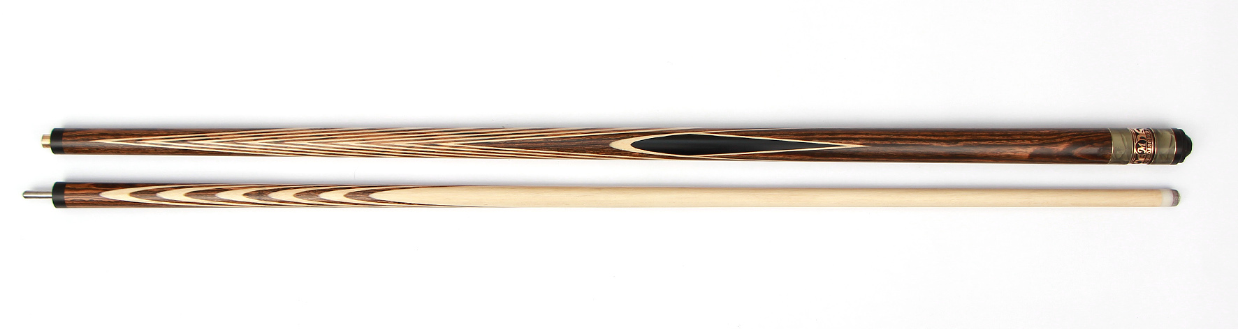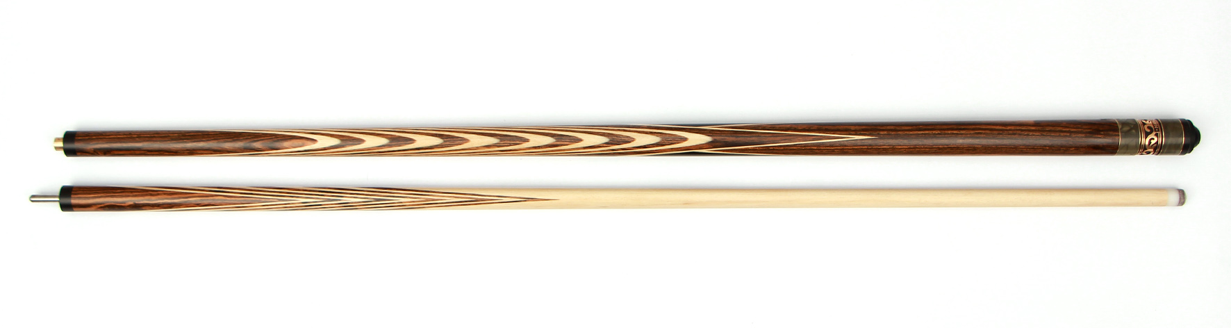 Двускладовой бильярдный кий с классическим венским запилом, выполненный из древесины бокоте и граба с вставкой из черного граба.