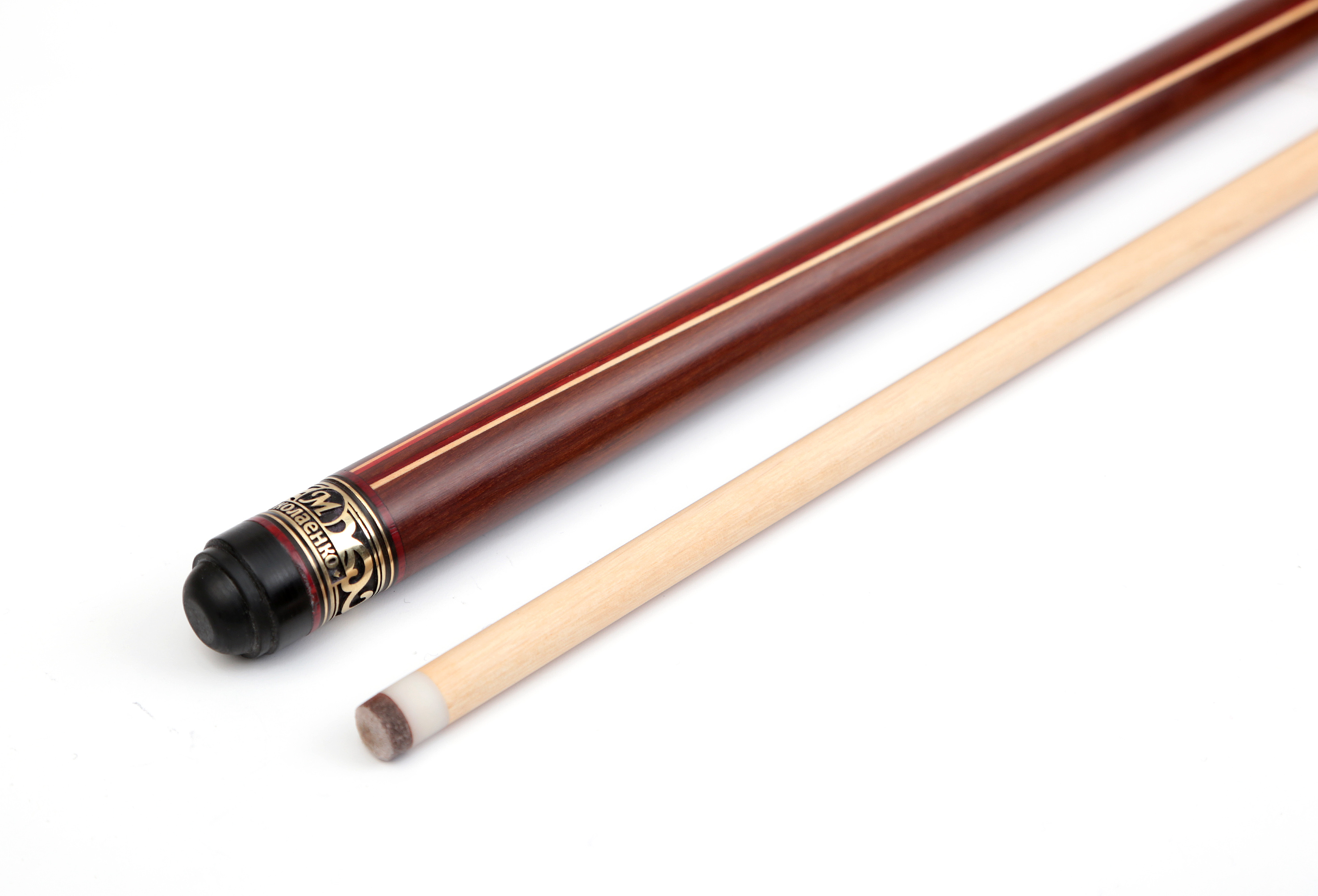Двускладовой бильярдный кий с классическим венским запилом, выполненный из древесины бокоте и граба ..
