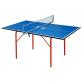 Тенісний стіл для закритих приміщень. Для ігрової поверхні використовується спеціально оброблена деревно-стружкова плита (ДСП) товщиною 16 мм. На ДСП нанесено спеціальне антиблікове пластикове покриття синього кольору. Тенісний стіл базується на компактному зручному візку, виготовленому з металевого трубчастого профілю діаметром 25 мм з поліефірним покриттям. Конструкція столу дозволяє тренуватися поодинці. Стіл легко переміщується на 4-х парних колесах діаметром 105 мм, 2 колеса маневрені.